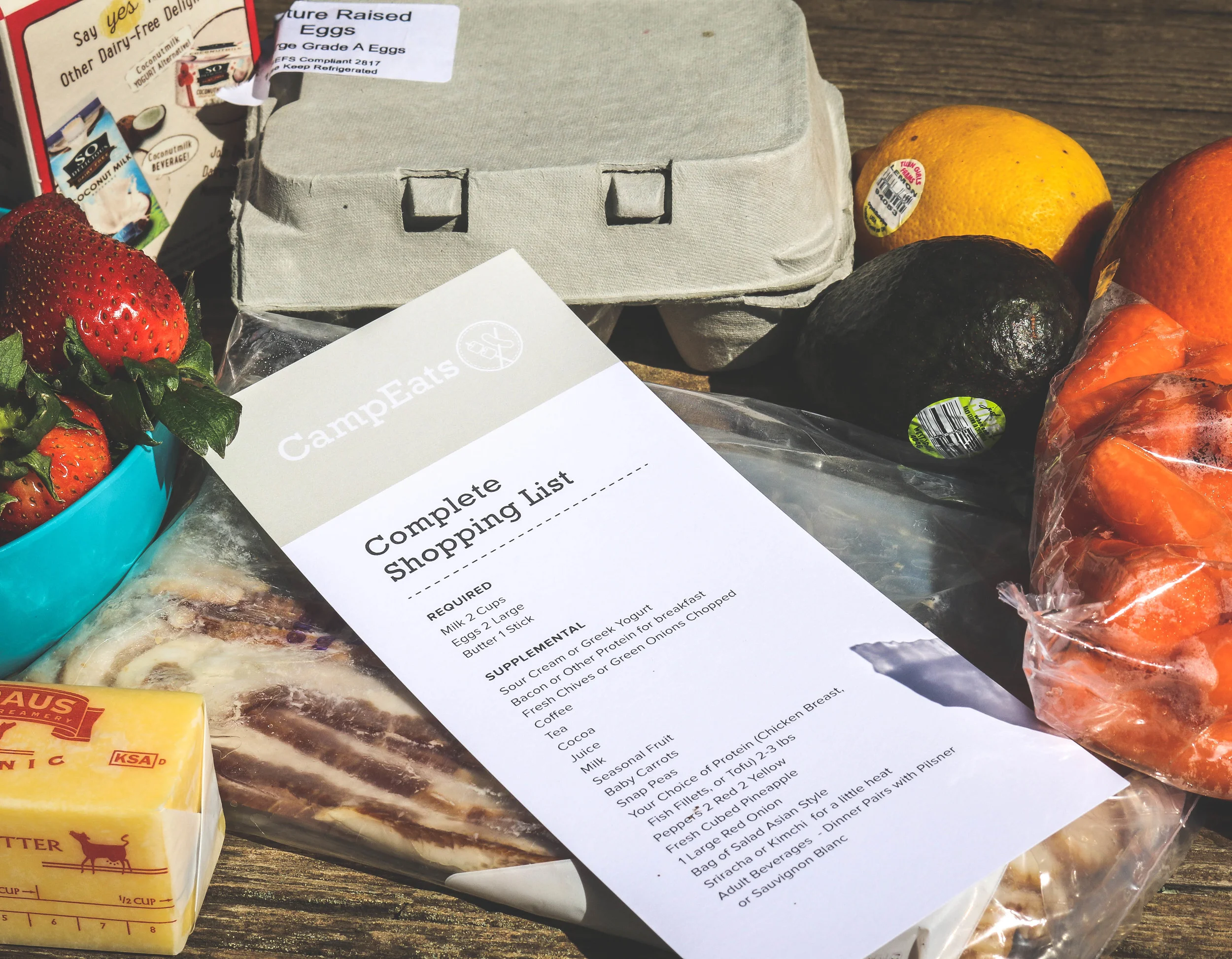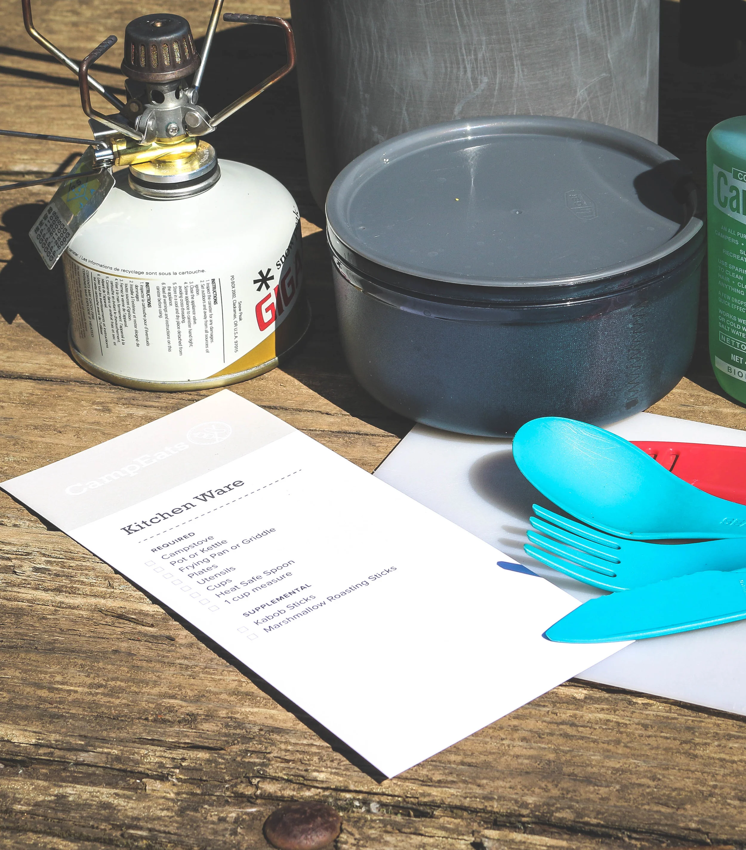 We'd like to introduce you to the CampEats Provisions Packs. They're a meal kit ready for adventure. Each pack includes all the non-perishable basics you'll need for a full day of outdoor fun for four hungry adults. Inside you'll also find a packing list ready to kick start your camp kitchen and a short list of fresh ingredients easy to acquire on your way to adventure.